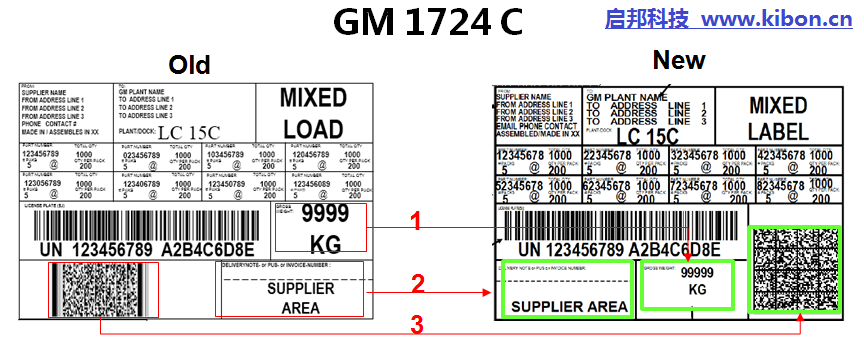 通用汽车物流标签有1724A、1724B、和1724C三个样式的规格。1724A是指箱标签,1724B是指单一物料托盘标签,1724C是指混合物料托盘标签。